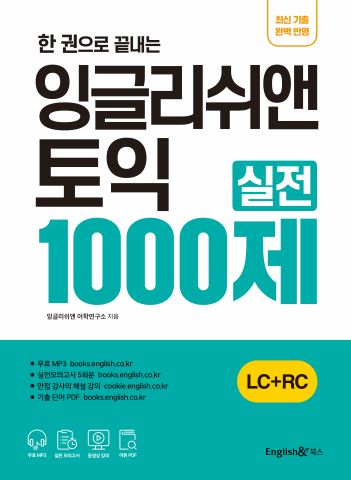 <잉글리쉬앤 토익 실전 1000제 LC+RC>는 토익 고득점 달성을 목표로 하는 학습자를 위한 토익 실전서입니다.