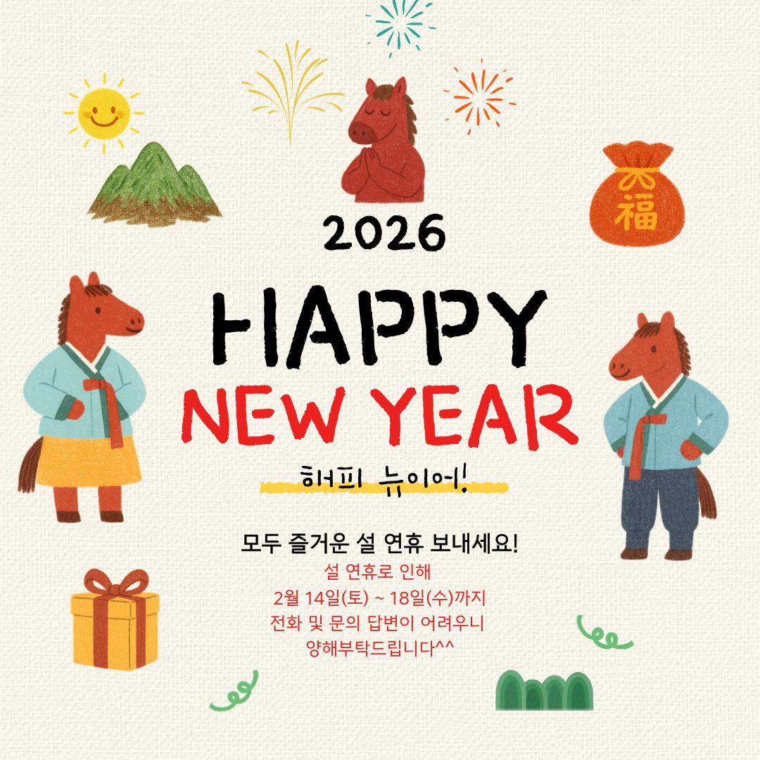 2/14(토) ~ 2/18(수)까지는 설연휴 기간으로 전화 및 문의 답변이 어려우니 양해부탁드립니다
